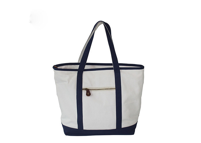 | Nazwa pozycji | Białe, niebieskie, 100% bawełniane torby z przednią kieszeń z zamkiem i długimi uchwytami |
